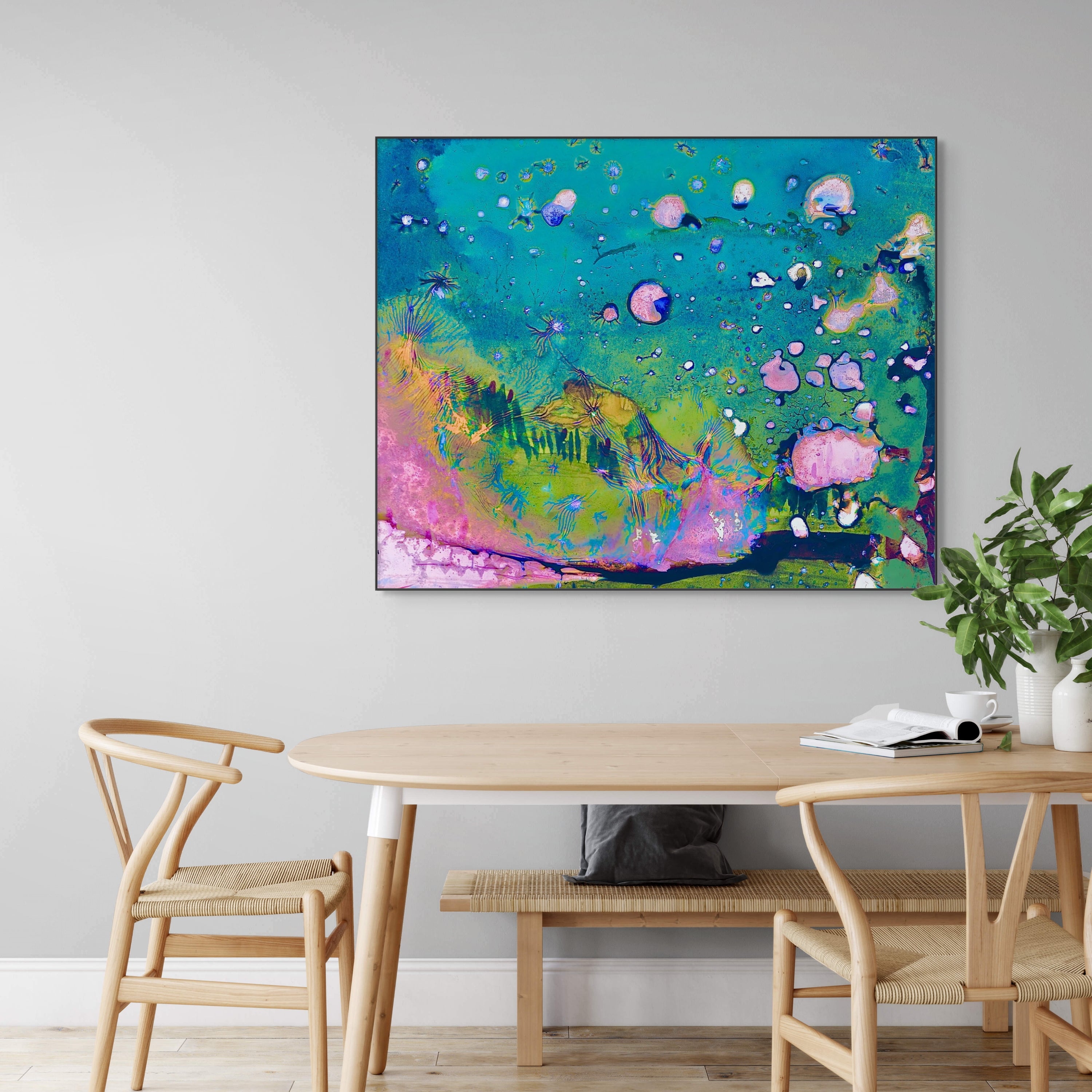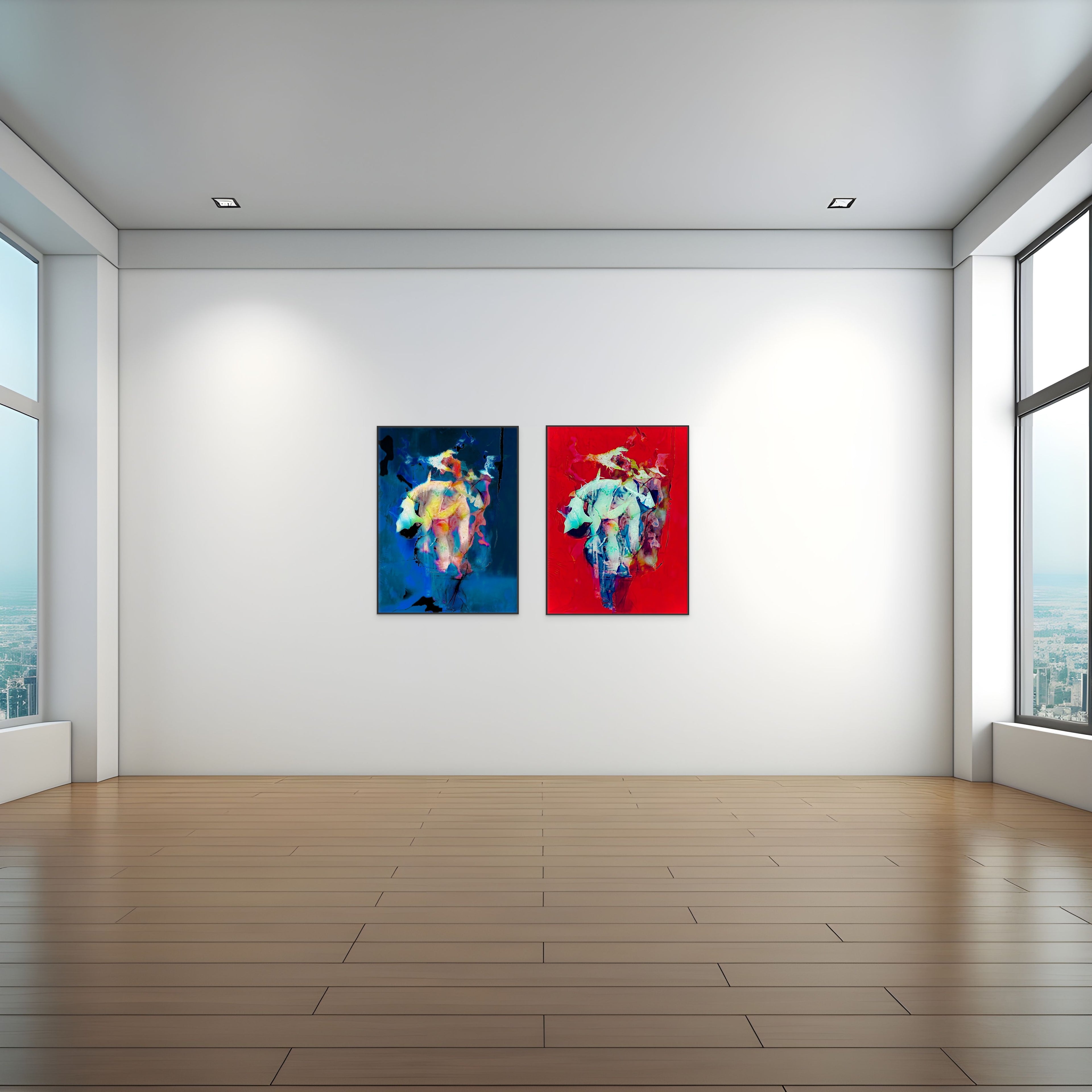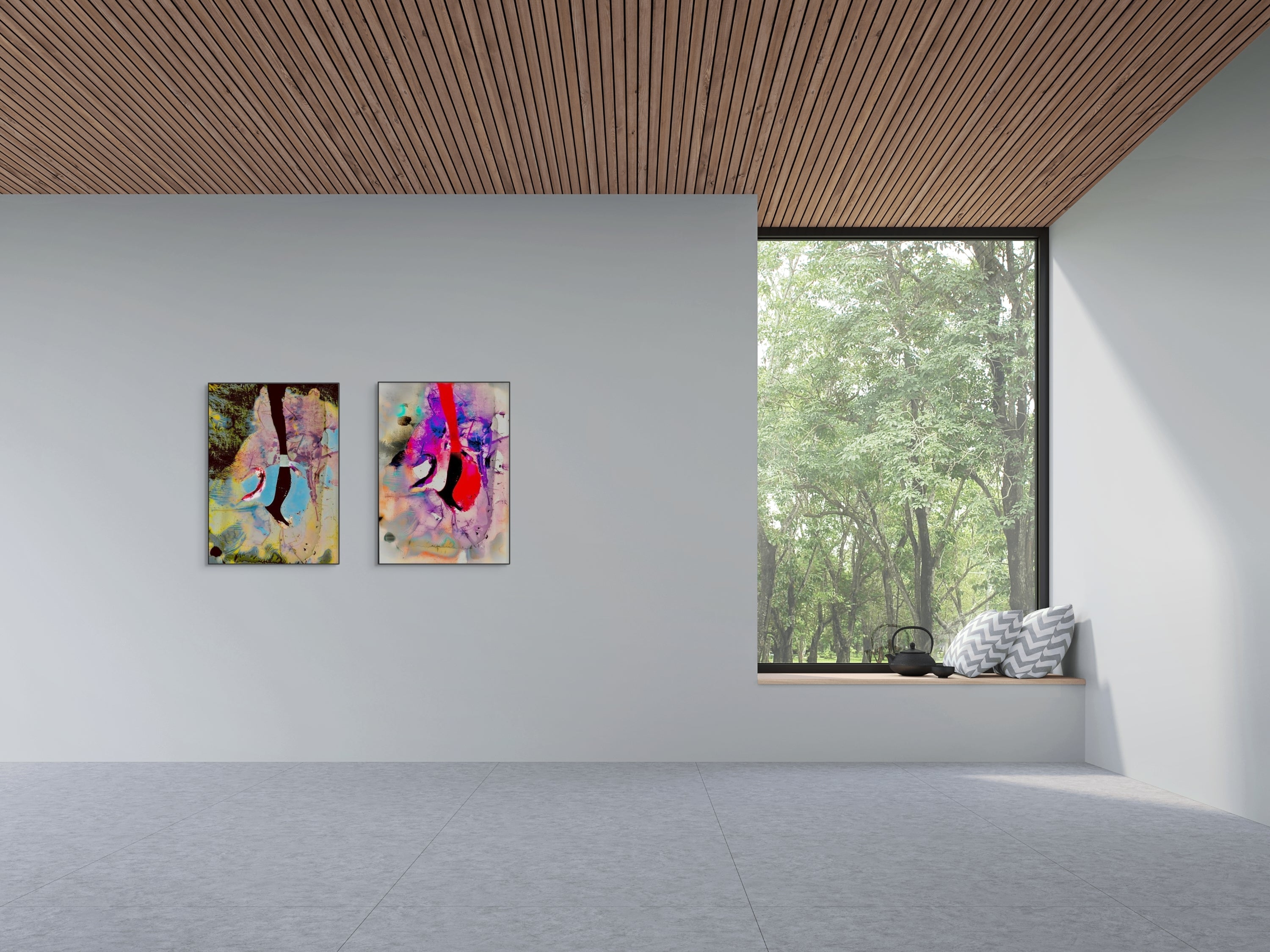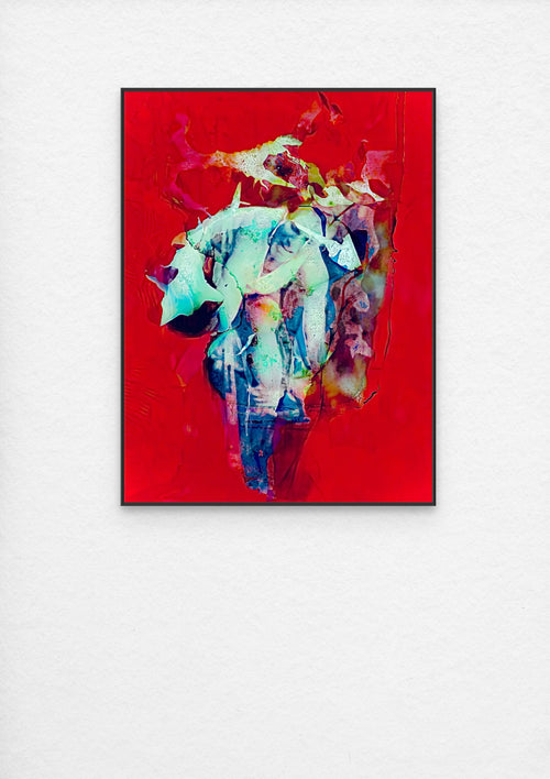 Kraftvolle Farbflächen, fließende Strukturen und surreale Überlagerungen entfalten eine Dynamik von Farbe und Gefühl.